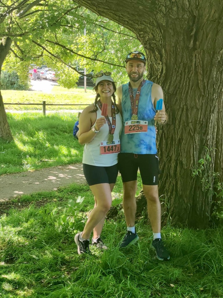 Brilliant race from Active Training World! They run a lot of local events, both running as well as duathlon and triathlon, across Hertfordshire and the Home Counties. They had Covid friendly measures in place and had made efforts to stagger and distance the start line. The marshals did a great job around the course and the water stations were fully stocked with individual water bottles, as well as electrolyte tablets. In a sustainability initiative, they opted out of giving finishers t-shirts and instead have said they are planting trees on our behalf. Medals and finishers Haribo and ice lollies it was instead!